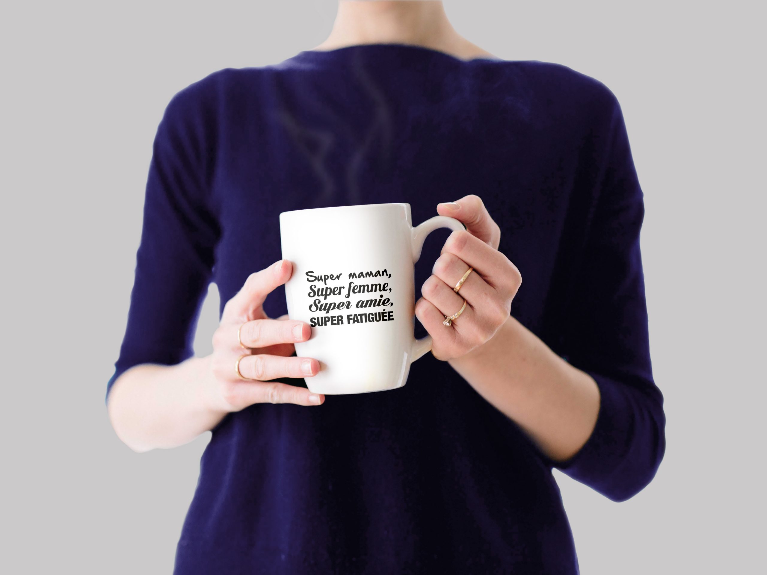– Un autocollant « super maman, super femme, super amie, super fatiguée » d’environ 2″X3″ de la couleur de votre choix