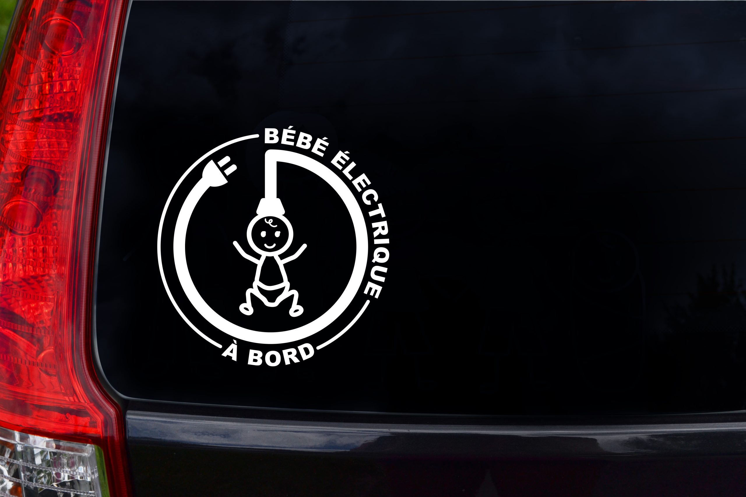 Pour les papas et mamans conduisants une voiture électrique ou pour les parents de bébés qui ont beaucoup d’énergie. Conçu d’après le logo des véhicules électriques.