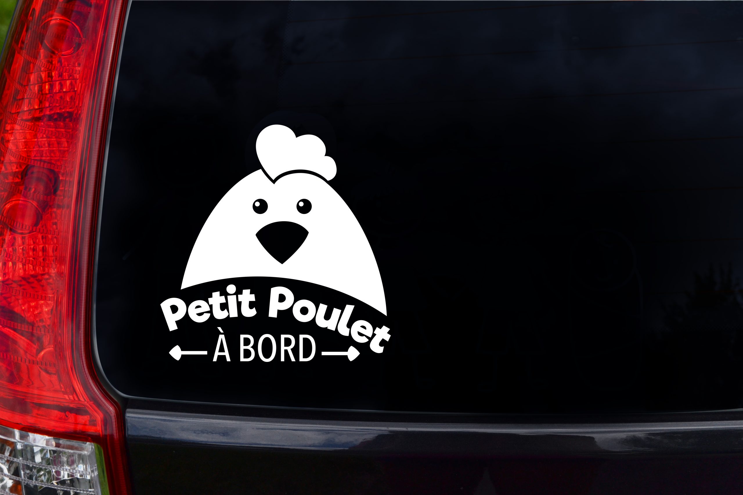 Autocollant pour voiture pour les parents d’un petit poulet. Conçu pour les parents qui veulent aviser les autres automobiliste que leur bébé est à bord de la voiture puis qu’il faut être prudent au volant.