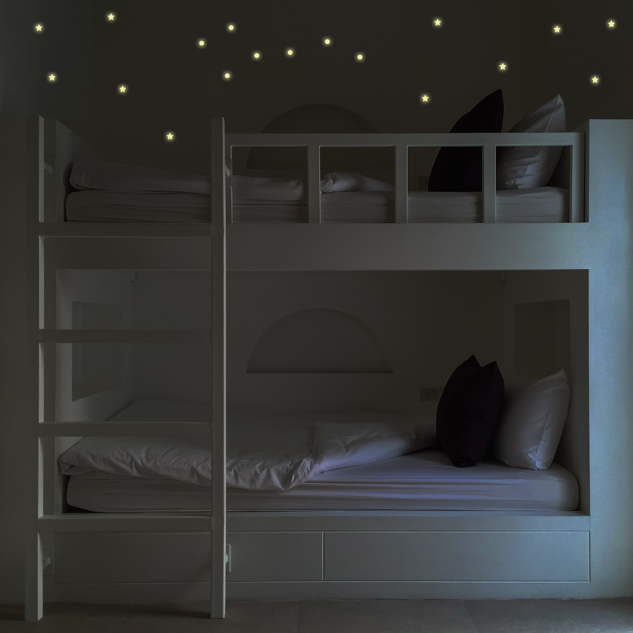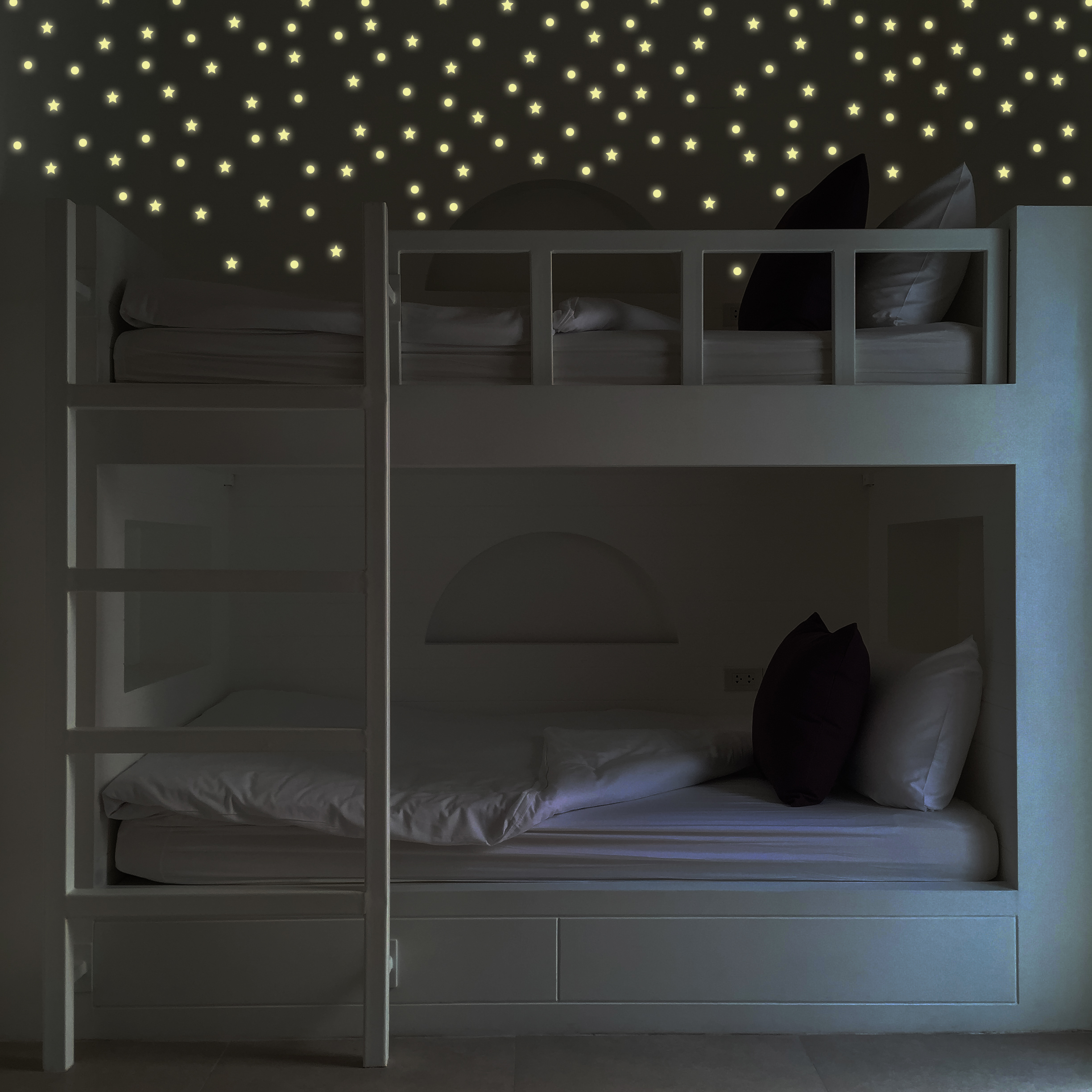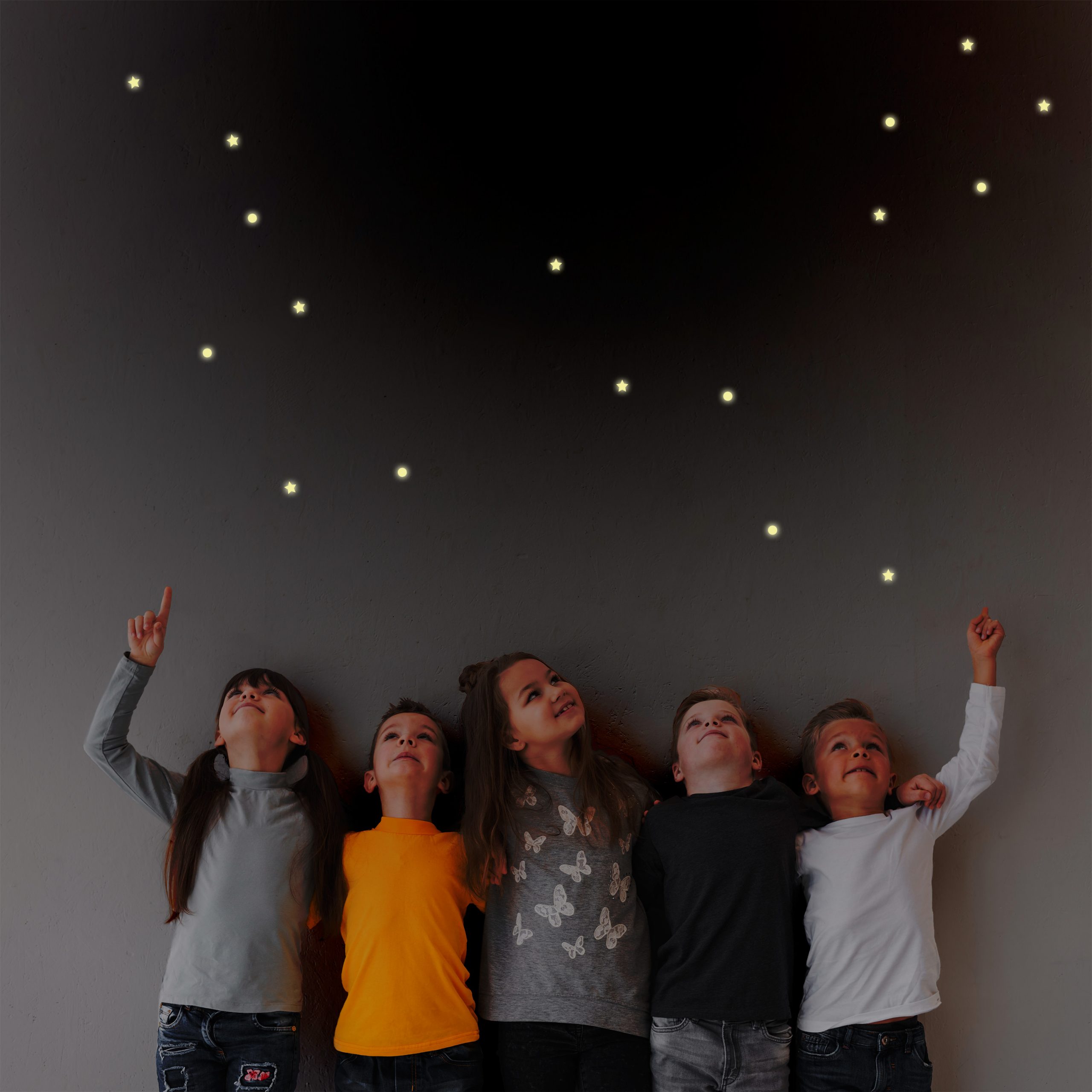 Décorez la chambre de votre enfant grâce à ces autocollants muraux d’étoiles phosphorescentes avec ces 84 étoiles ainsi que ces 70 ronds en vinyle autocollant phosphorescents. Vous pourrez décorez facilement la chambre de votre enfant ou de votre bébé pour lui apporter une petite touche unique en laissant place à votre imagination lors du positionnement des 84 étoiles ainsi que ces 70 ronds en vinyle autocollant. Les autocollants sont fabriqués à l’aide de vinyle de qualité destiné à un usage intérieur. Conçu pour durer, elles ont un fini lustré et brillent dans le noir. Installez les de façon aléatoire au plafond ou sur les murs ou encore formez des constellations. Les autocollants sont jaunes le jours et brillent vert la nuit. Ils sont faciles à installer et n’endommageront pas les murs lors de leur retrait. Ils sont aussi faciles d’entretien. Vous n’avez qu’à passer un chiffons humide sur les murs et sur les autocollants pour enlever la poussière et les saletés accumulées. Tous les autocollants sont mes créations originales. Étant graphiste de formation, je les dessine moi-même à l’ordinateur pour ensuite les transférer dans un logiciel de découpe afin de procéder à la découpe du vinyle. Tous les autocollants sont découpés sur place. Ils sont emballés dans un bel emballage conçu et créé par moi. Ils s’offrent bien en cadeau comme cadeau de naissance ou comme cadeau d’anniversaire. Conçu pour durer, elles ont un fini lustré et brillent dans le noir. Installez les de façon aléatoire au plafond ou sur les murs ou encore formez des constellations. Les autocollants sont jaune très pâle le jours et brillent vert la nuit.