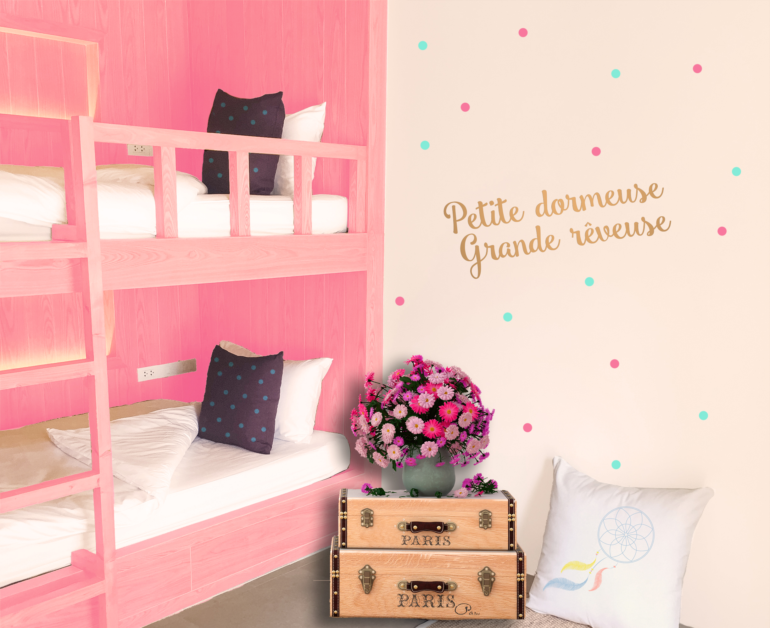 Si vous avez une petite rêveuse qui dort peu cet autocollant est pour elle. Décorez la chambre de votre enfant avec ce bel autocollant mural « petite dormeuse grande rêveuse » parfait pour une chambre à coucher. Conçu pour durer, ils ont un fini satiné et ne peuvent pas être repositionné.