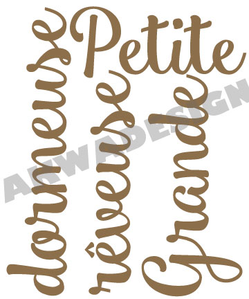 – 1 autocollant or avec citation « petite dormeuse grande rêveuse » d’environ 10″X3,5″ si agencé comme sur la photo.