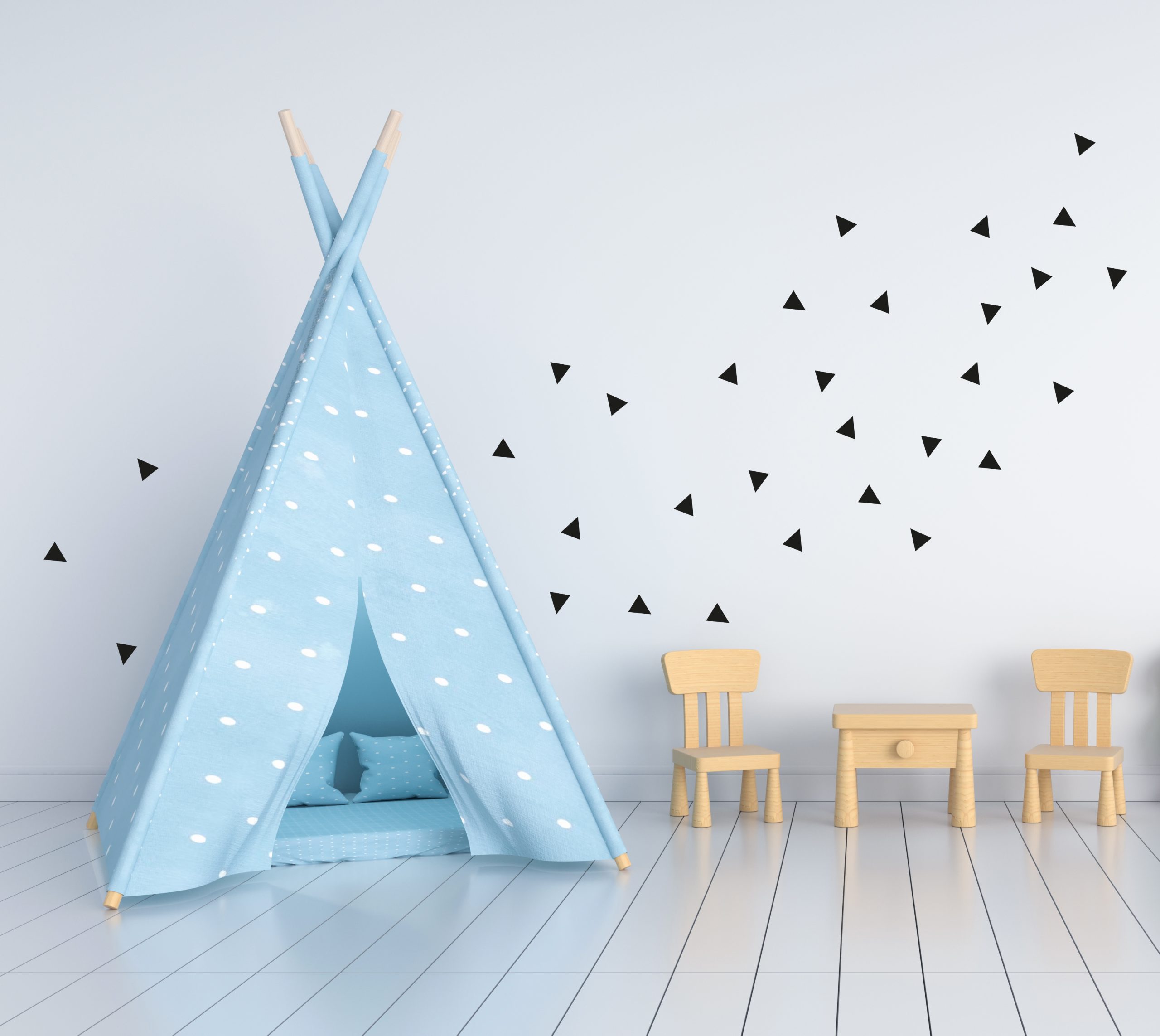 Décorez facilement la chambre de votre enfant grâce à ces 32 autocollants muraux en formes de triangles de 1,25 pouces de hauteur par 1,25 pouces de largeur.