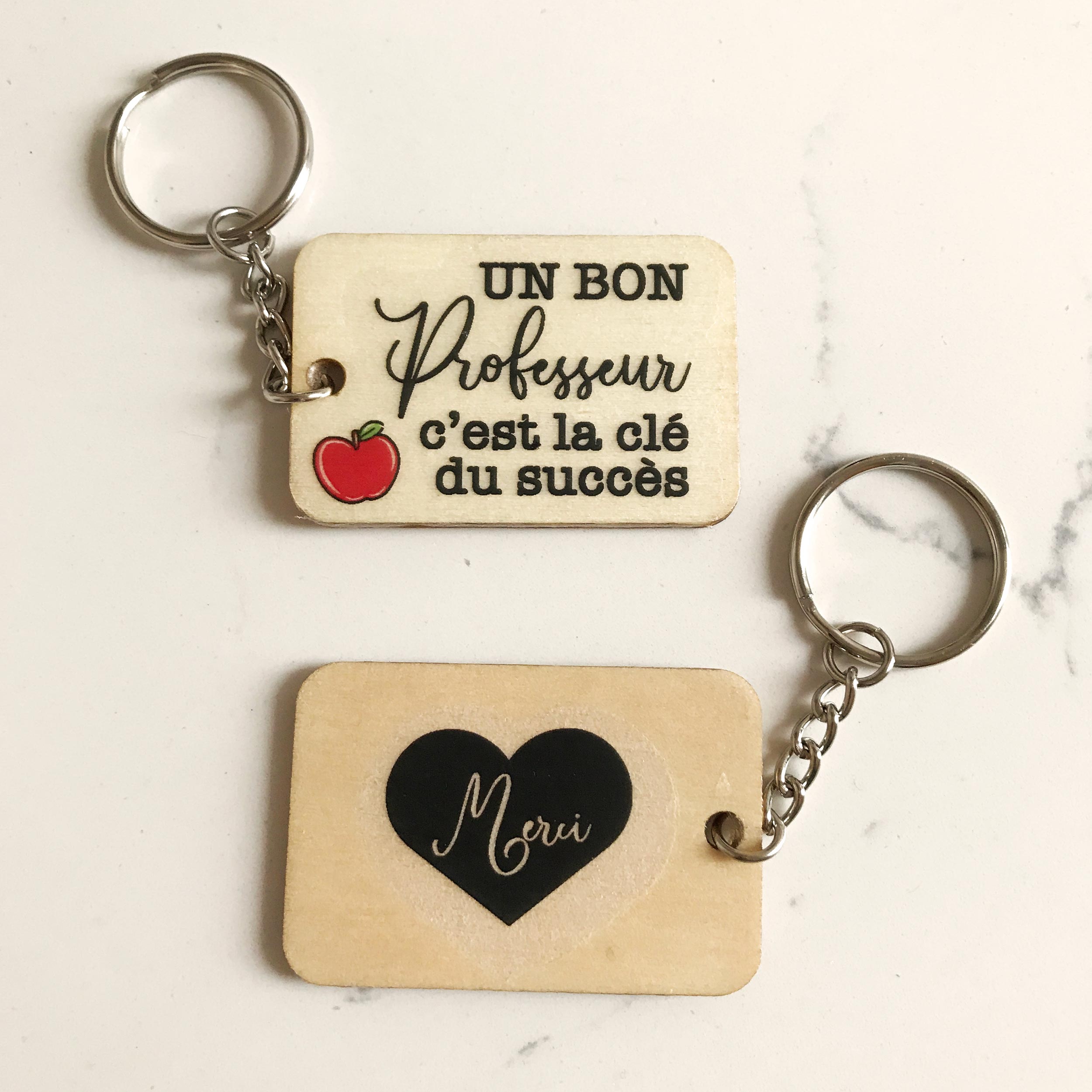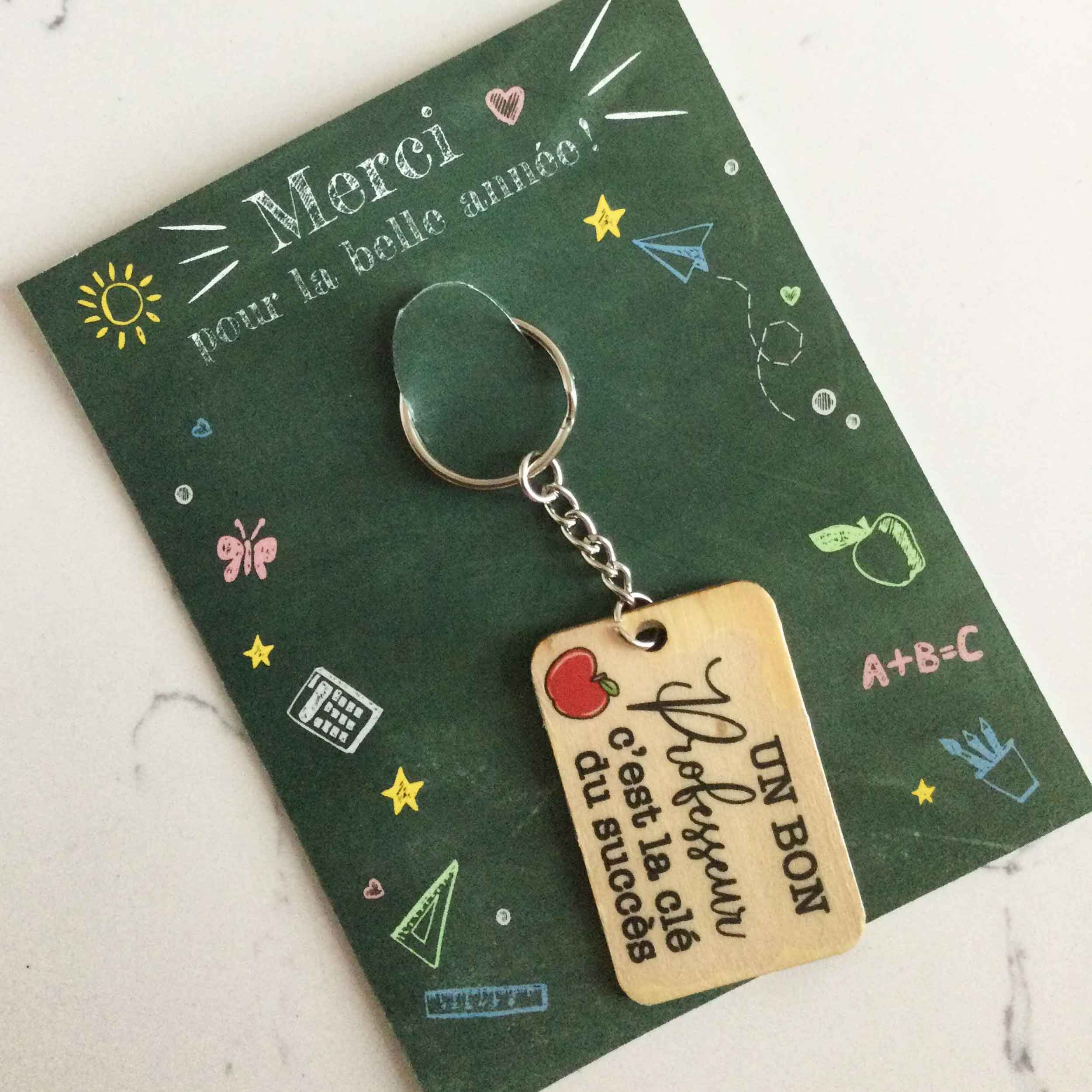 Porte-clés en bois vernis avec inscription « un bon professeur c’est la clé du succès » au recto et « Merci » au verso. Une excellente idée cadeau pour le professeur qui se dévoue pour votre enfant.