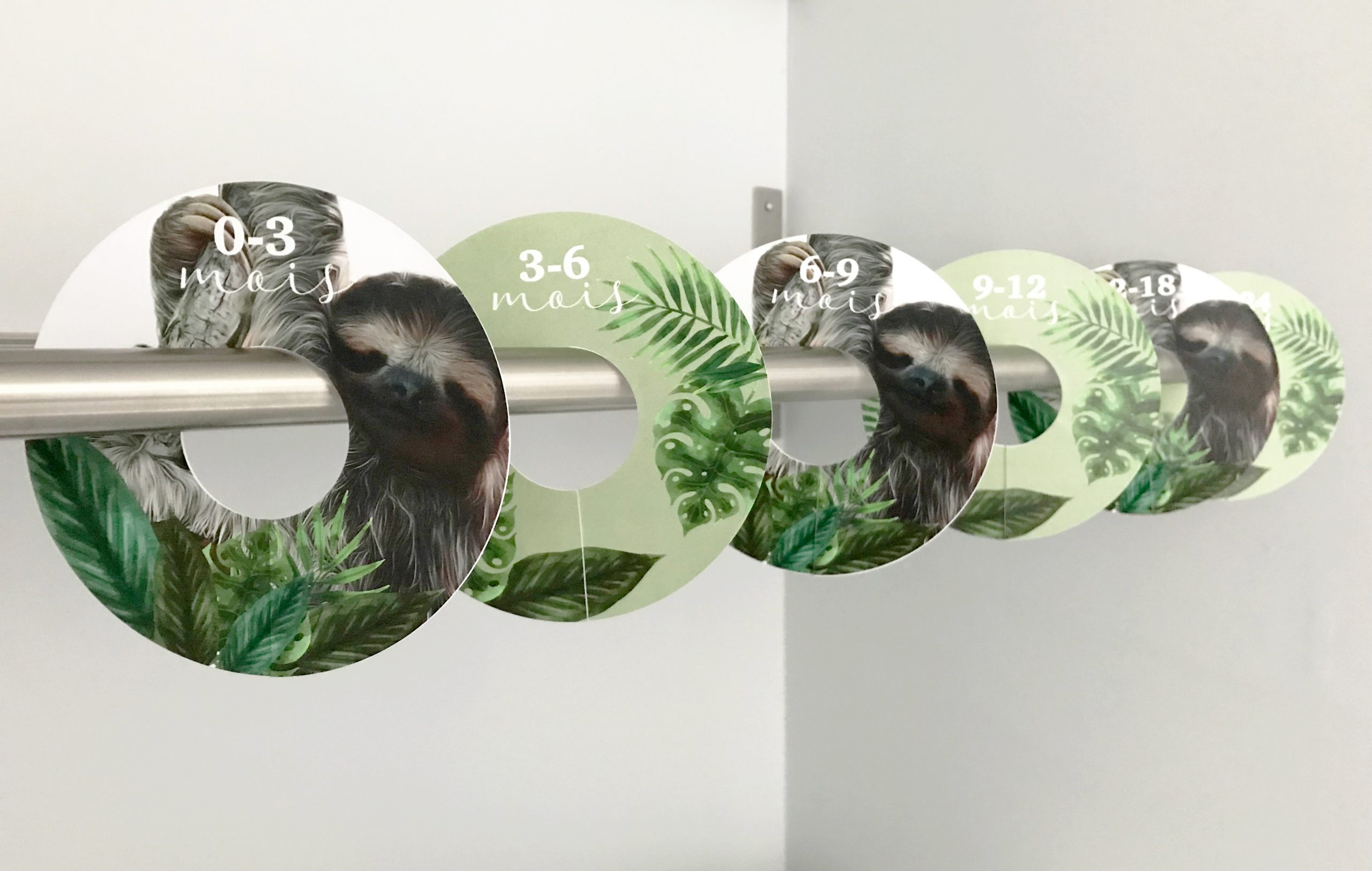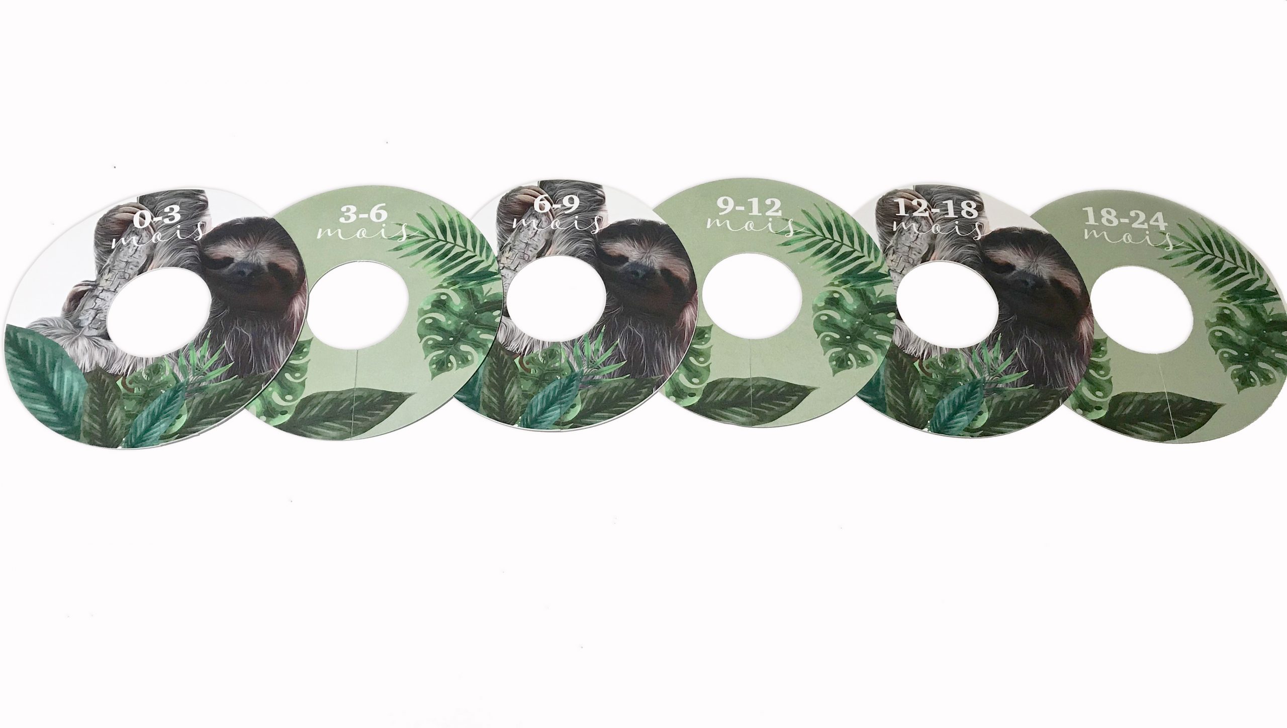 6 séparateurs pour penderie de 0 à 24 mois avec des paresseux pour organiser la penderie de bébé. Permet de ranger et d’organiser les vêtements selon leurs tailles.