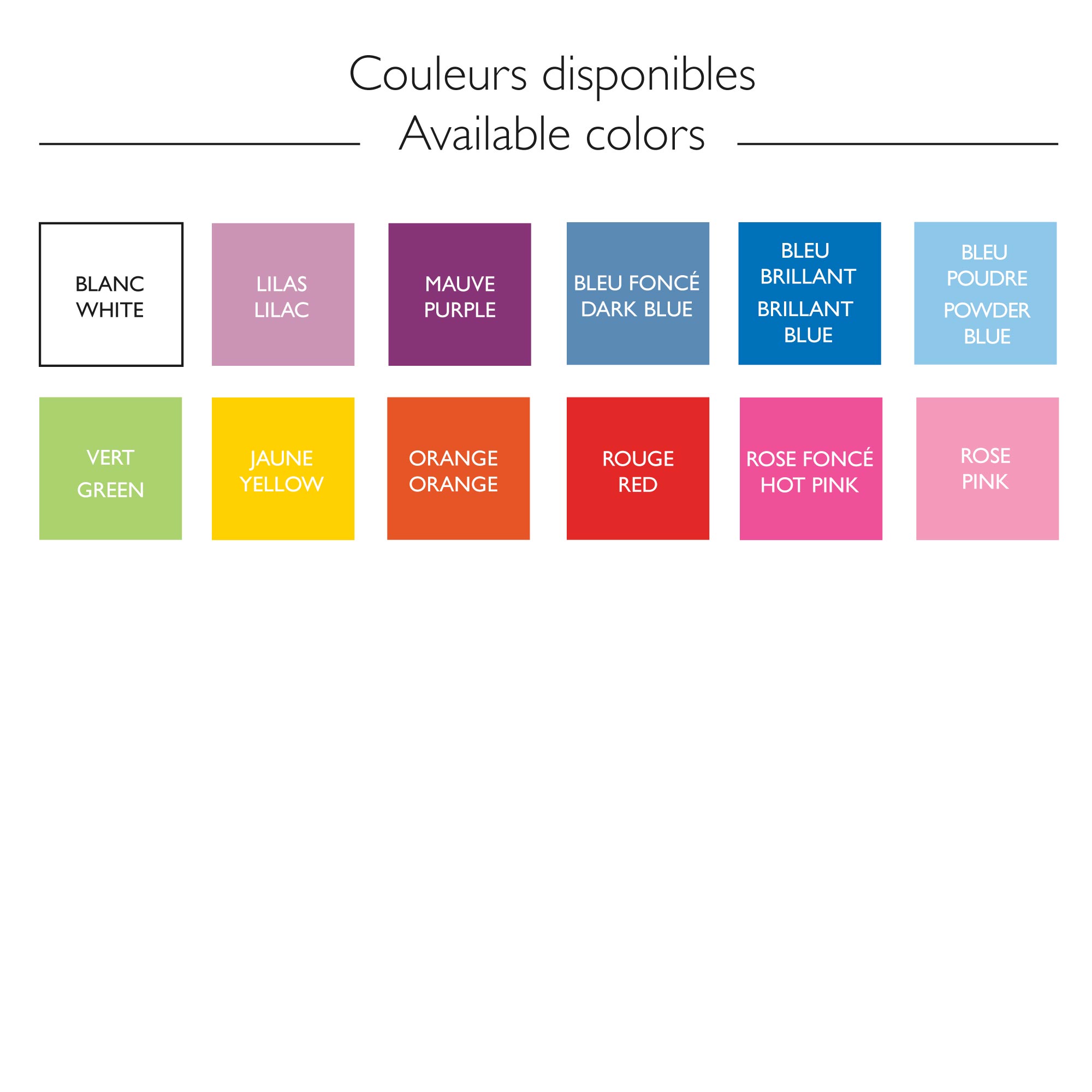 Les couleurs peuvent différer de celles générées par votre écran d’ordinateur.