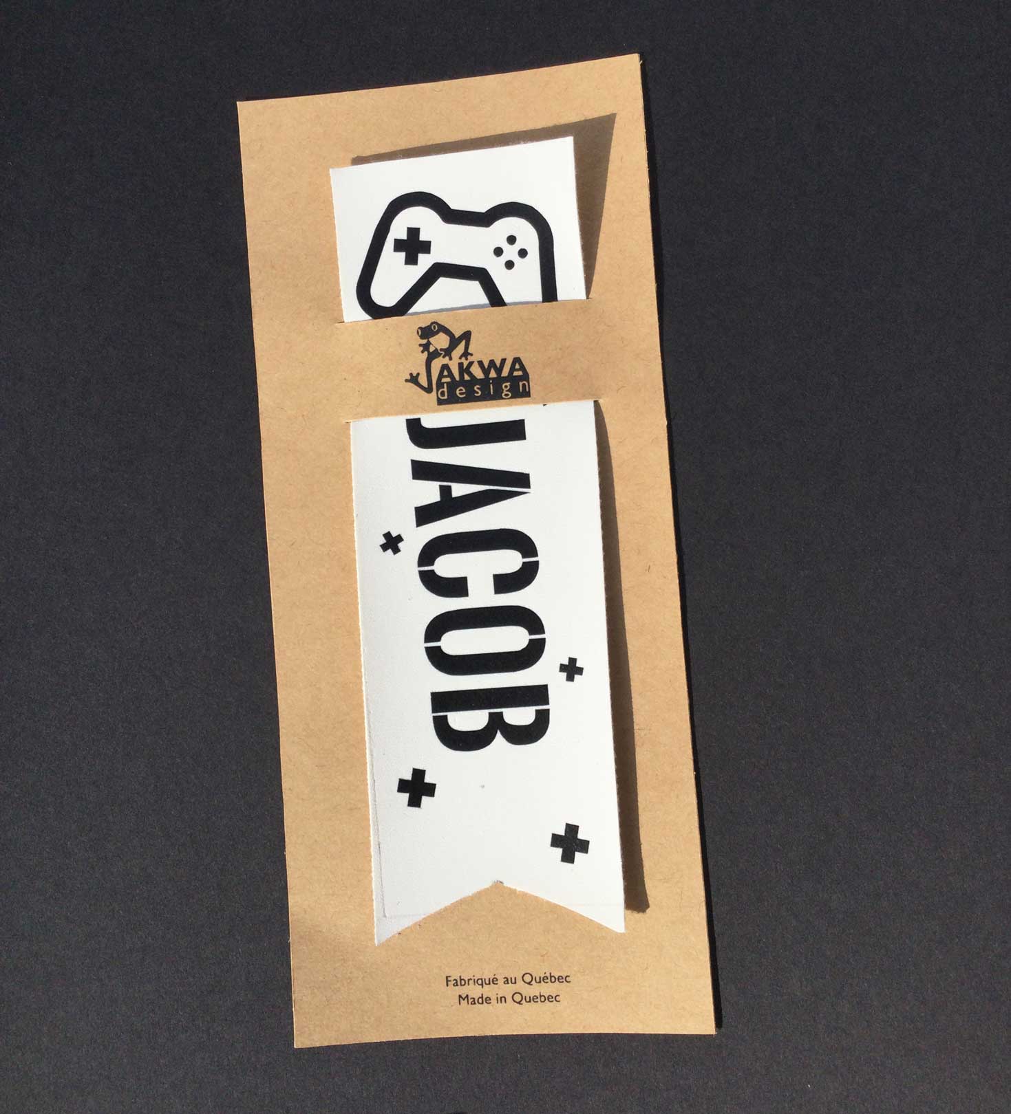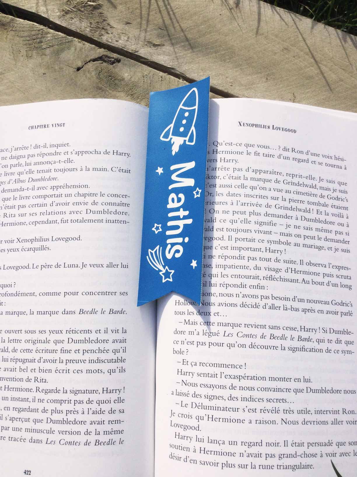 Offrez un signet personnalisé à votre enfant, votre petit enfant, votre neveu ou nièce. Une excellente idée cadeau pour sa fête ou pour Noël. Se glisse très bien dans un bas de Noël ou dans un calendrier de l’avent. Signet en faux cuir entoilé avec illustration au choix ainsi que le prénom de votre enfant.